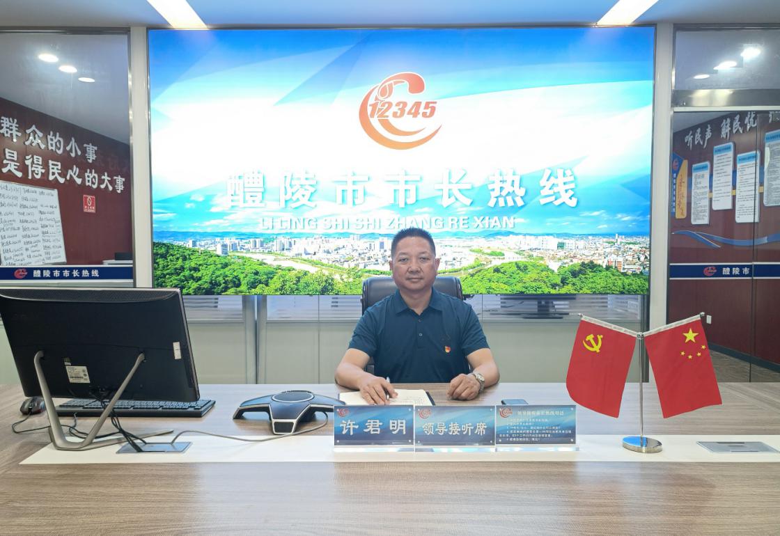 6月23日上午,株洲市生态环境局醴陵分局党组书记、局长许君明来到 "12345"市长热线接线大厅,通过电话接听市民投诉举报和政策咨询,回应广大市民对醴陵市生态环境保护工作的意见和建议。