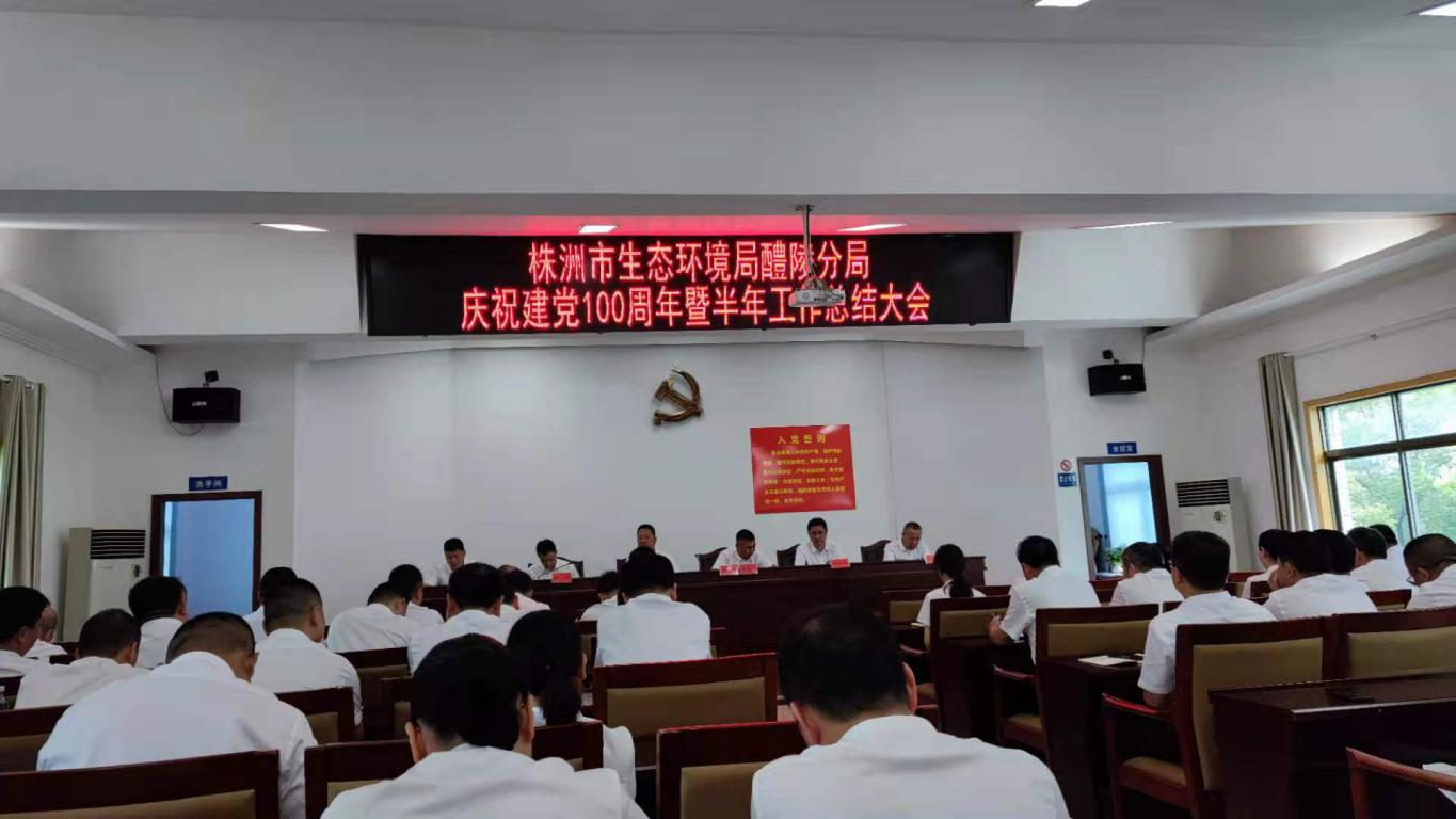 6月30日上午,株洲市生态环境局醴陵分局隆重召开庆祝建党100周年暨半年工作总结会议,全体干部职工和部分退休干部代表参加会议。