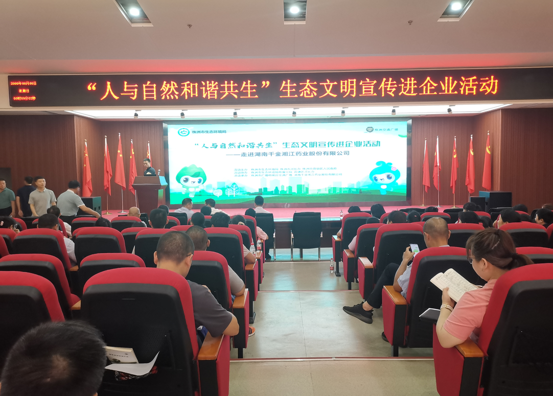 7月26日,生态文明"六进"活动之进企业活动在湖南千金湘江药业股份有限公司隆重举行,市生态环境局副局长毛亚文、荷塘区副区长张璐等领导及单位参加了启动仪式。