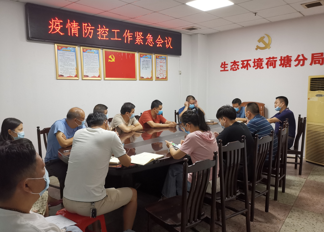 7月30日上班伊始,根据省、市、区疫情防控工作安排部署,荷塘分局迅速响应,组织召开疫情防控工作紧急会议,不折不扣落实当前疫情防控工作要求。会上,周应和局长宣读了《关于切实加强当前新冠肺炎疫情防控工作的通告》,宣布即刻进入防疫"战时状态",要求全体干部职工严格落实通告要求、全力做好办公区域消杀工作和个人防控工作、全面完成在职人员疫苗接种、加强辖区内涉疫医废规范化管理和安全处置工作、全体工作人员非特殊情况不得离株,以高度的使命感和责任感应对新冠病毒蔓延。
