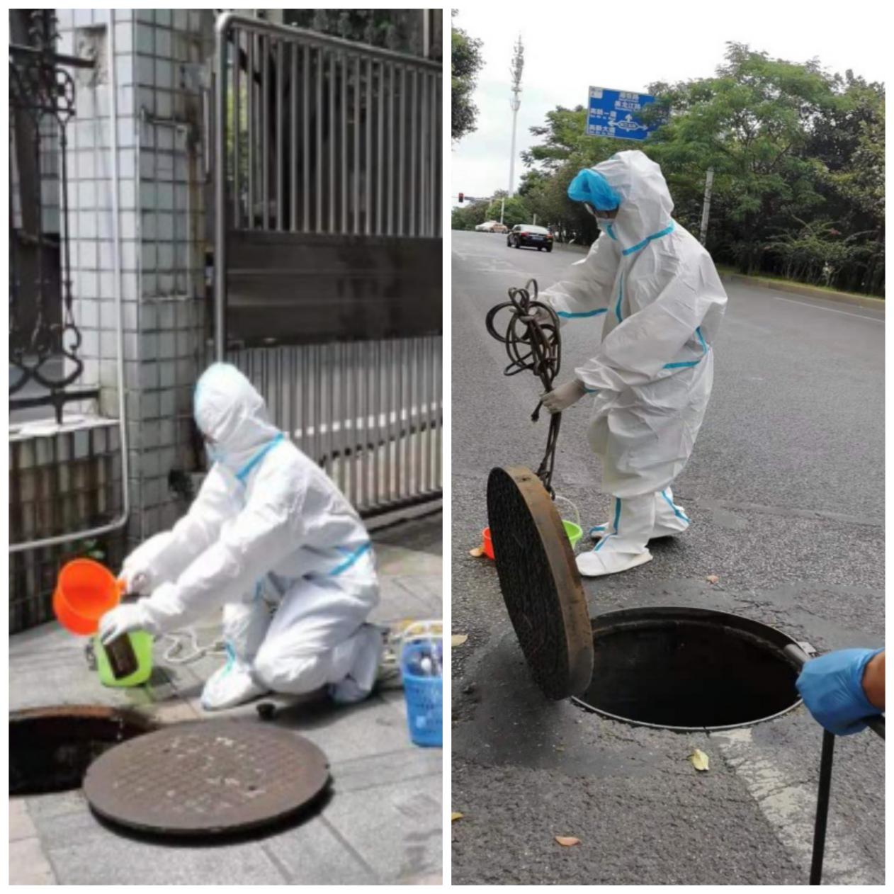 根据上级文件要求,隔离点的生活污水需要始末两端投药消毒和定时检测水质,联系多个监测公司,都以没有防护装备无法取样被婉拒。"取样,我们来",张五可、易忠红穿上防护服打开隔离点化粪池井盖,迎着恶臭和危险完成监测取样。
