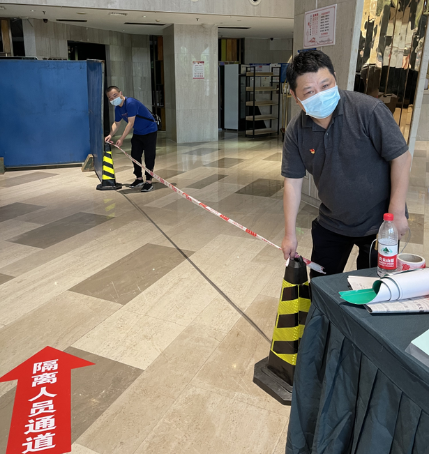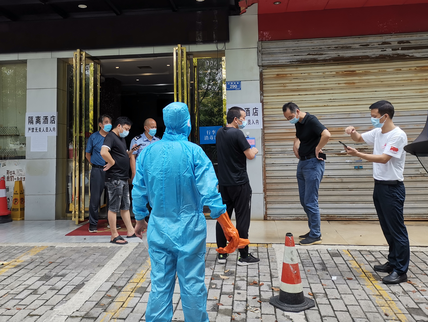 二、奋战一线。"同志们,党和人民考验我们的时候到了,谁志愿去一线",荷塘分局局长周应和向局工作人员吹响了"冲锋号"。"我去、我也去、派我去......"一时间,志愿去金域半岛隔离酒店一线值守的同志们发出阵阵响亮的宣战声,场面让人振奋。最后,经综合权衡,分局雷隽、易桂平两名同志作为分局首批志愿者带着光荣使命奔赴一线,牵头负责该隔离点日常管理工作。