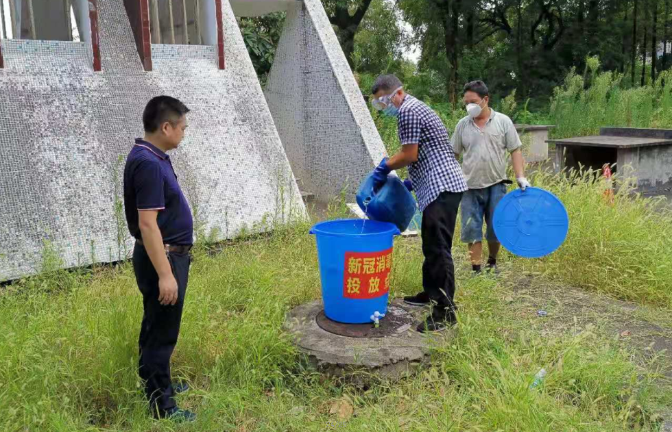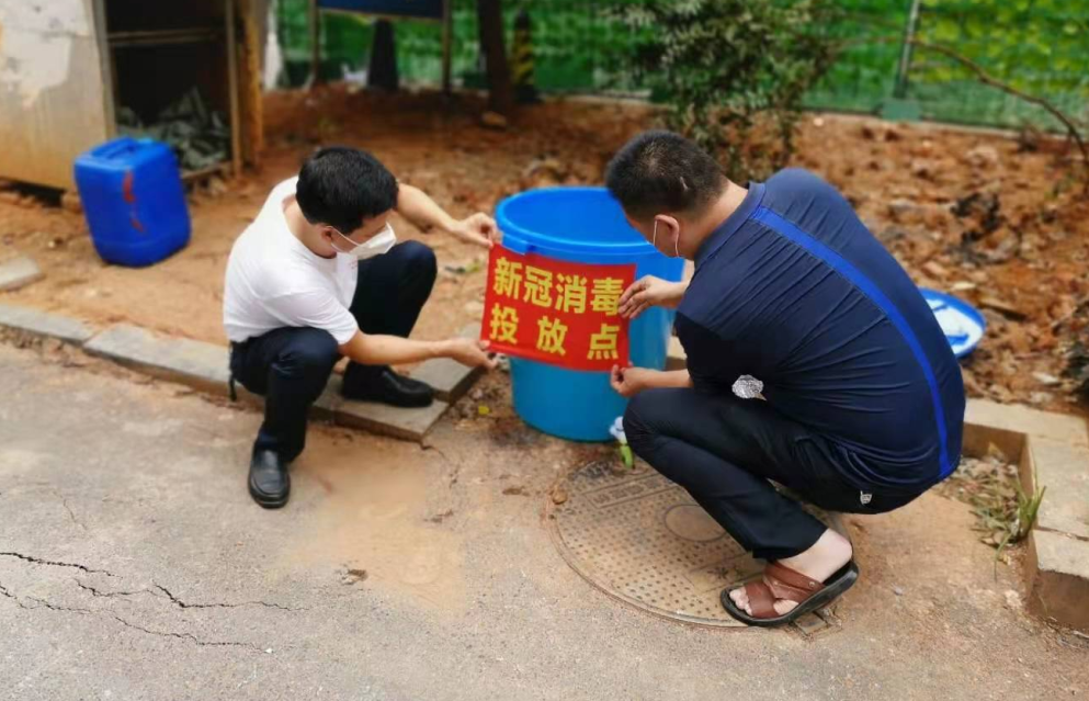 二、为进一步确保疫情防控不留死角,8月8日,荷塘分局张启云大队长牵头组织实施了对辖区内各集中隔离点化粪池的消毒工作。通过确定点位、找准定位、控制水位,各集中隔离点位顺利安装了次氯酸钠消杀设备和张贴了警示标识,并由专人值守,做好台账,确保连续消毒。