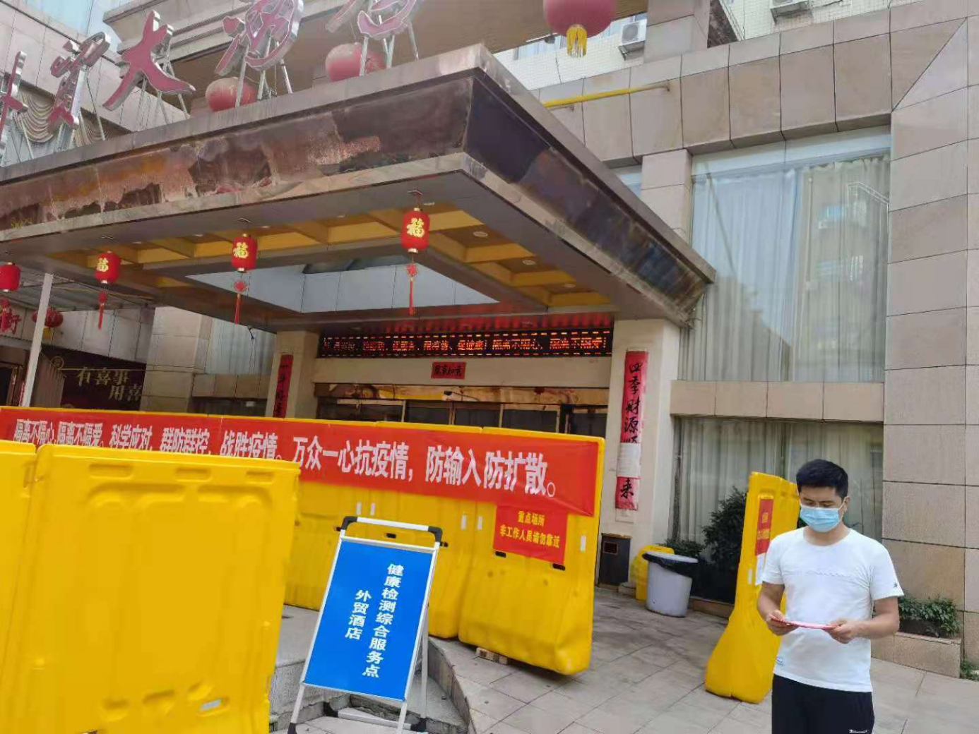 "外排污水严格按要求加药,设置专人管理,工作用品要定期消毒,消毒作用时间不少于30分钟,建立消毒加药台帐,确保污水处理设施正常运行。"执法大队八中队中队长陈可捐嘱咐酒店工作人员,污水产生源头的拖布和抹布等卫生用具应按房间分区专用,使用1000mg/L的含氯消毒液;污水终端便池及周边用2000mg/L的含氯消毒液消毒。同时,特殊有害垃圾建立进出管理台帐,每24小时转运一次,特别是转运打包时要注意检查,如未封闭严实,须用预先配制的1000mg/L含氯消毒液喷洒于封口处或破损处,再外加一层医疗废物包装袋套装封口。