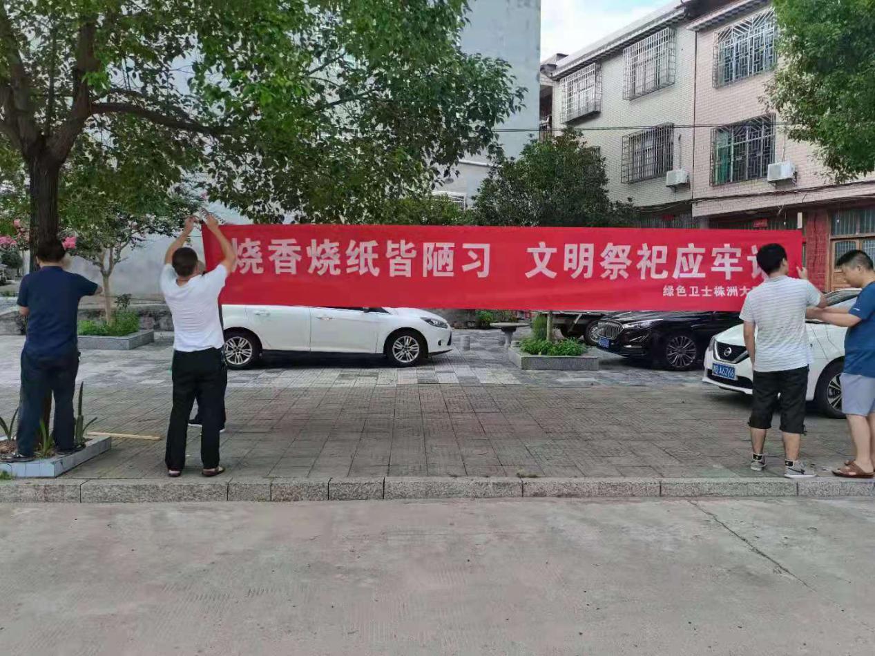 为营造安静祥和、绿色环保的生活环境,使文明城市更添文明本色,促进和引导广大市民文明低碳开展祭祀活动,营造文明、和谐、平安的祭祀环境,8月18日,株洲市生态环境局茶陵分局组织工作人员到各社区和洣水河边开展"文明祭祀,中元节禁烧禁燃"文明劝导宣传活动,利用悬挂横幅宣传标语、上门温馨提示等方式,积极宣传"保护环境、低碳祭祀"的理念,倡导居民积极主动转变观念、自觉行动起来,破除陋习、文明祭祀,选用鲜花祭祀、网上祭祀来祭拜先人,宣读祭文、用心哀思,以精神传承代替传统实物祭祀,既减少了不必要的浪费、杜绝了污染,也用文明的祭祀来表达了对先人的最好告慰,营造出不随处焚烧纸钱、燃放鞭炮、自觉树立文明祭祀的新风尚,为保卫茶陵的蓝天白云和生态文明建设贡献了一份力量。