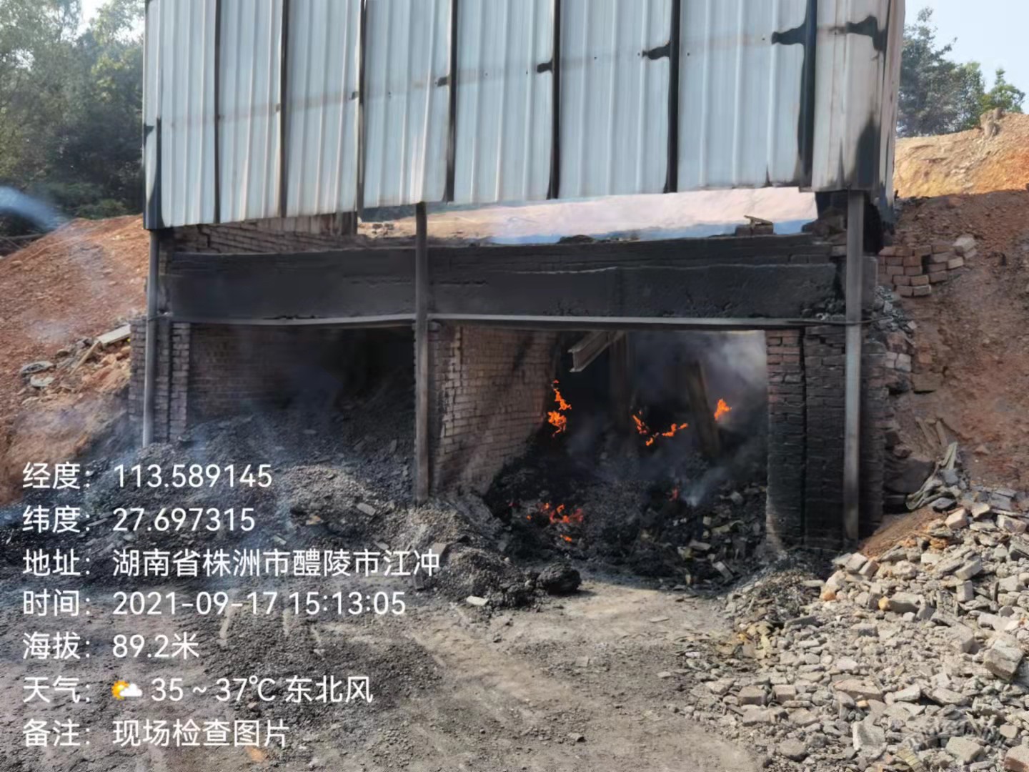 9月17日,株洲市生态环境局醴陵分局执法人员会同王仙镇政府、香水村村委工作人员赶赴现场进行调查,发现该异味来源于王仙镇香水村江冲组原醴陵市三泰鞭炮厂(废弃)后门山岭上,该点有一金刚砂加工点,未办理任何审批手续,现场正在烧制原料,有浓烟冒出,能闻到明显恶臭味。