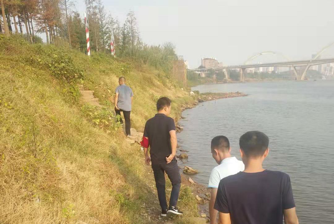▲荷塘分局生态环境工作人员对建宁港水质情况进行现场查勘