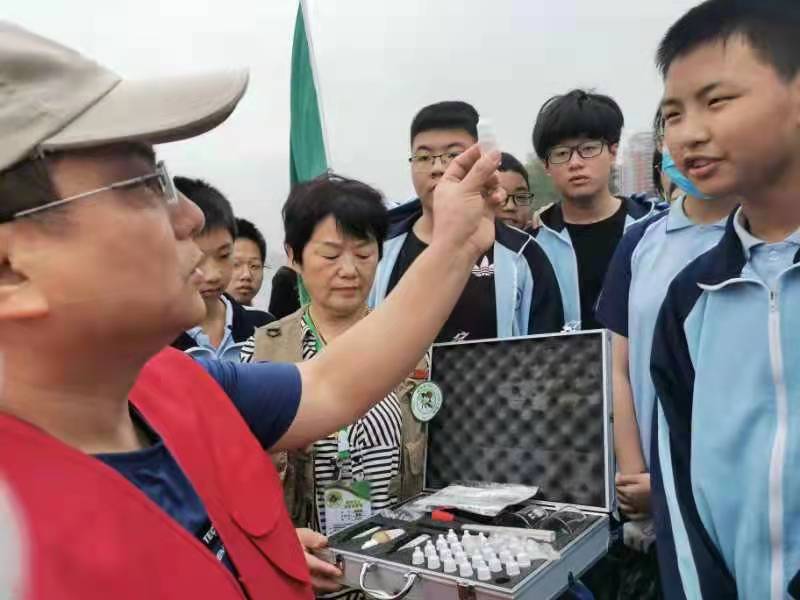 ▲天元分局生态环境工作人员和建宁中学学生开展巡河、净滩、学习水质检测活动