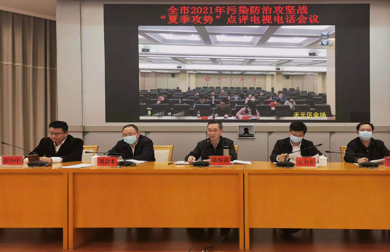 11月3日,在全省2021年污染防治攻坚战"夏季攻势"点评电视电话会议后,我市随即召开会议,贯彻落实全省会议精神,对全市污染防治攻坚战"夏季攻势"工作进行点评和再部署。市委副书记、代市长陈恢清强调,要深入学习贯彻习近平生态文明思想,深刻警醒、迅速行动,强化举措、决战决胜,坚决高质量完成"夏季攻势"和生态环境保护各项目标任务,让绿色成为株洲高质量发展的鲜明底色。市委常委、副市长王卫安主持会议。