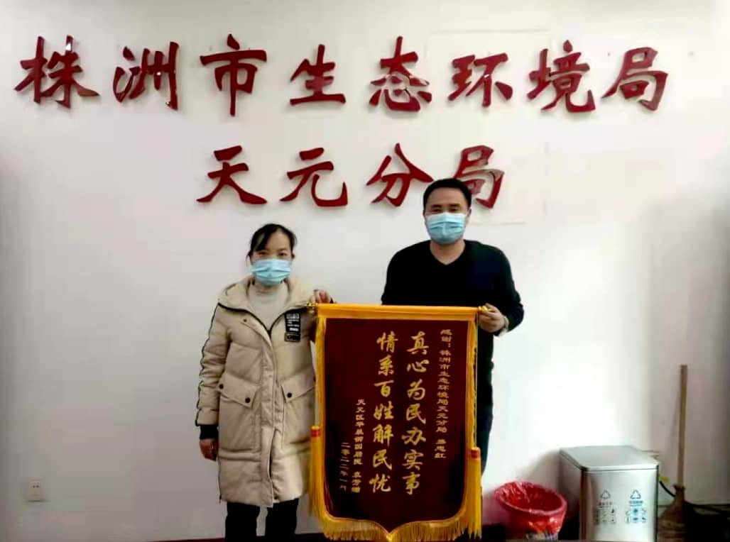 日前,天元区华晨御园小区的居民袁芳女士,将一面写有"真心为民办实事,情系百姓解民忧"的锦旗,送到了株洲市生态环境局天元分局,感谢该局工作人员易忠红,在处理其投诉过程中的付出。