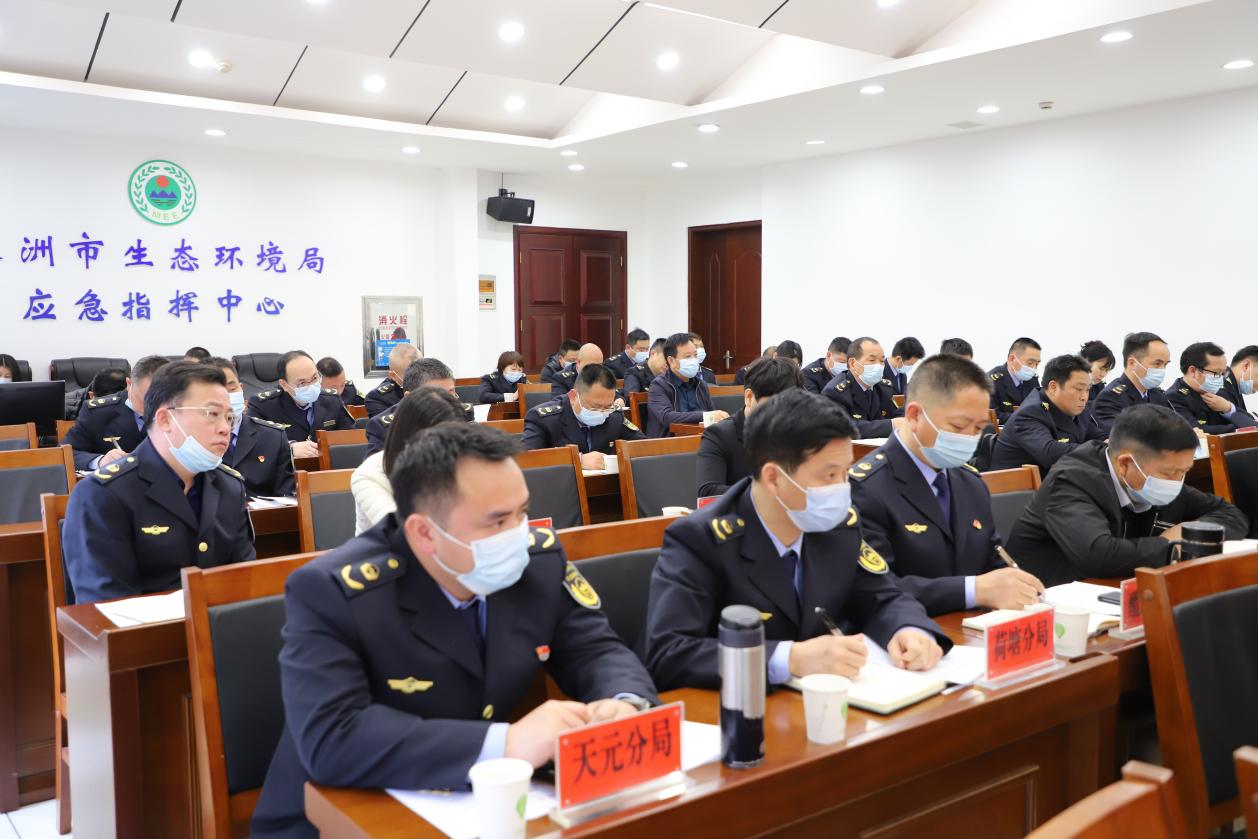 局党组成员、湖南省株洲生态环境监测中心主任钟学才,局党组成员、副局长颜少龙,环境事务中心主任尹卫东,及各县市区分局、相关科室的负责人等参加会议。