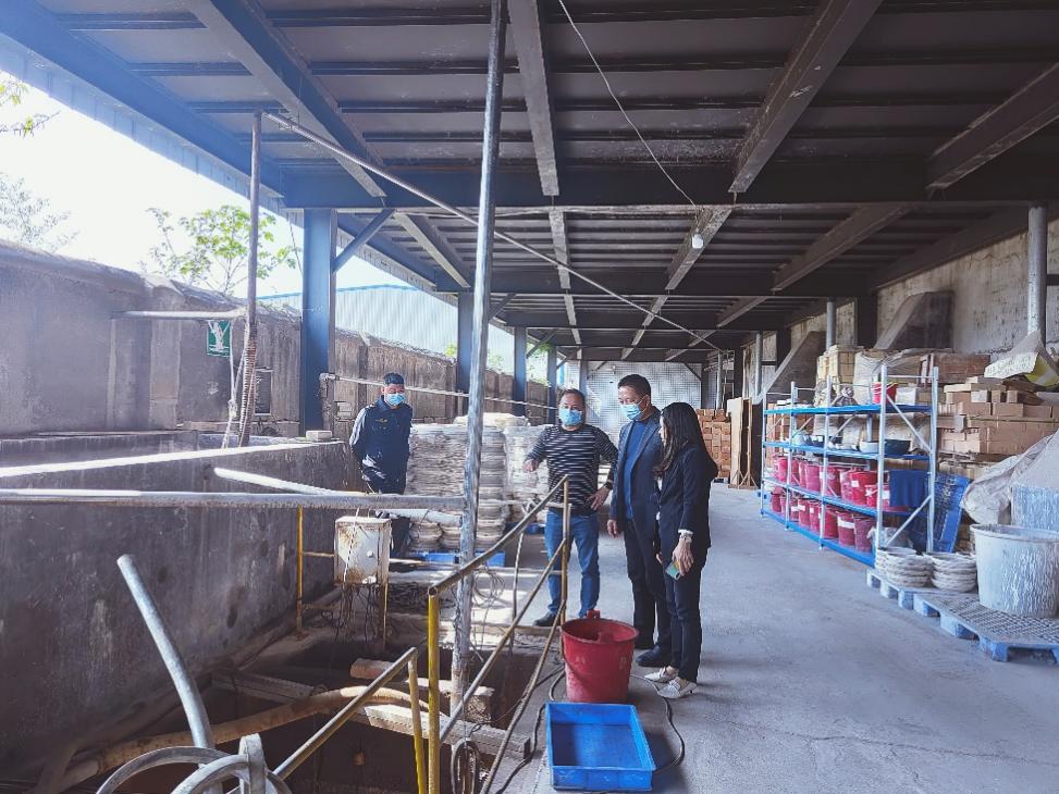 在时代金属,督导组现场仔细检查了残存钝化液的暂存情况,查看了整改方案及委外处置合同。充分肯定了企业整改态度及整改质量。针对泉湘陶瓷废水处理设施软管较多,现场杂乱,雨污分流不彻底的问题。督导组为企业提出硬管取缔软管、加设阀门、设置管道标识、废水走向标识等整改意见,同时表示,将积极与园区对接,将企业污水纳入污水管网,彻底解决企业雨污分流问题。