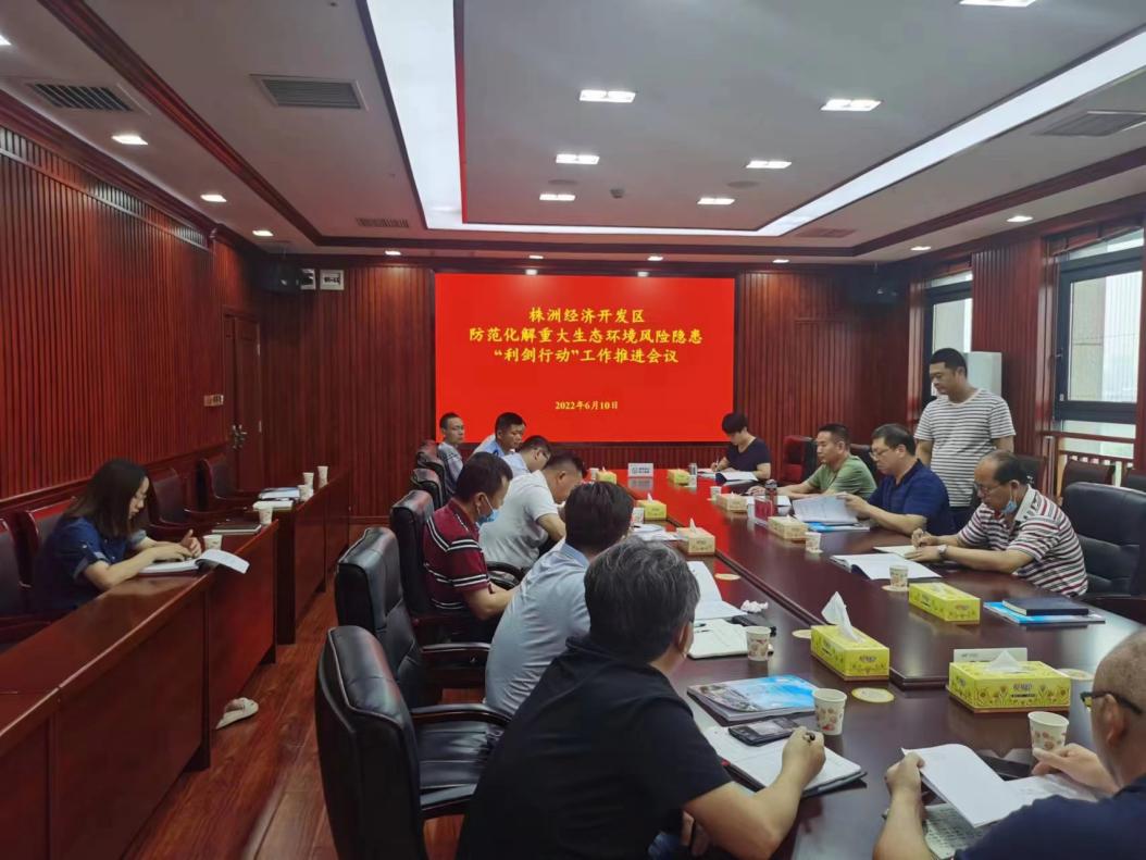 近日,株洲经济开发区分管领导陈文元召开经开区防范化解重大生态环境风险隐患"利剑行动"、"春雷"行动工作推进会,区生环委成员单位、各镇街相关负责人及云发集团分管领导参加会议。