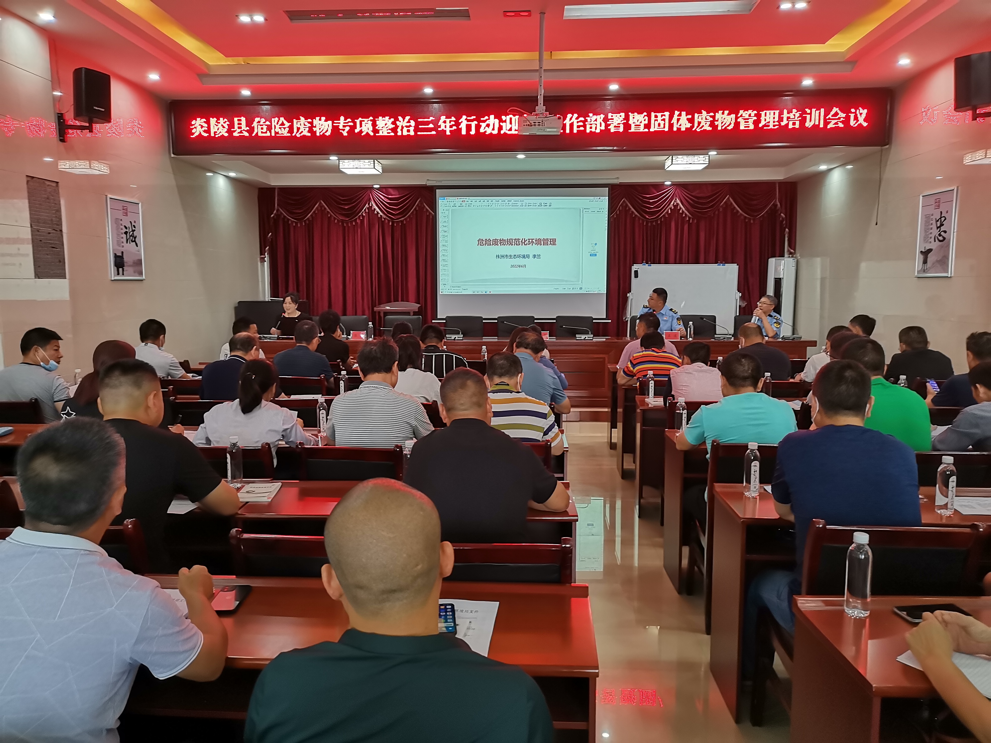 6月17日,炎陵县召开固体废物管理培训会议。生态环境炎陵分局执法人员、各乡镇环保专干、35家危废产废企业负责人参加了会议。
