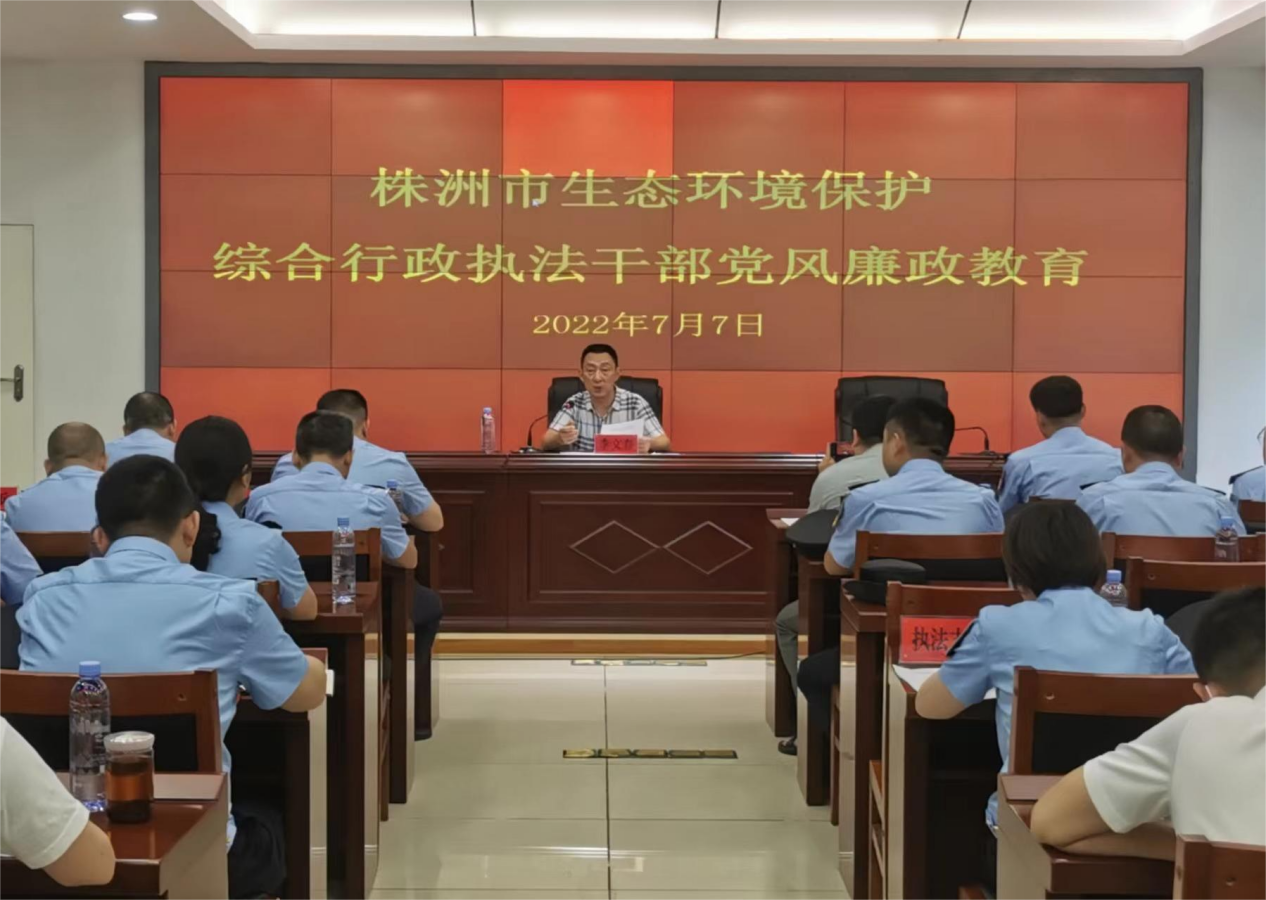 7月7日,市生态环境局召开株洲市生态环境保护综合行政执法干部党风廉政教育,株洲市纪委监委驻市生态环境局纪检监察组组长、局党组成员李文春参加活动并作专题辅导。