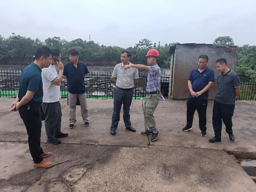 图 1 调研组及市区相关人员于荷塘区汽车城排渍站进行现场调研