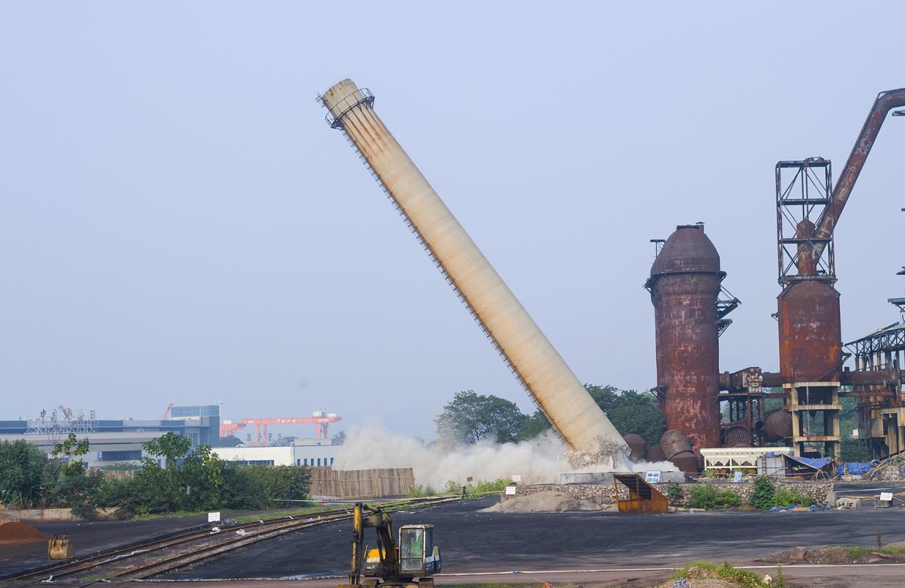 ▲清水塘片区的钢厂最后一根烟囱倒下
