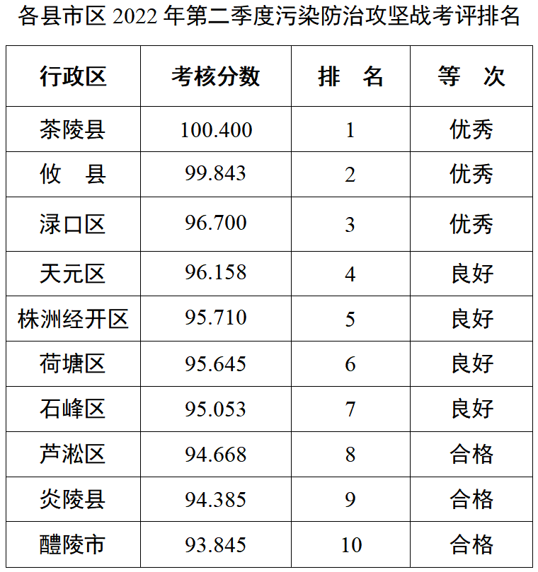 根据市委、市政府指示要求和市生环委相关文件精神,市生态环境保护委员会办公室组织开展了2022年第二季度污染防治攻坚战考评,经市生环委研究同意,现将考评结果予以通报。