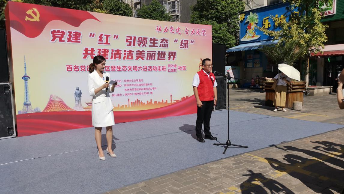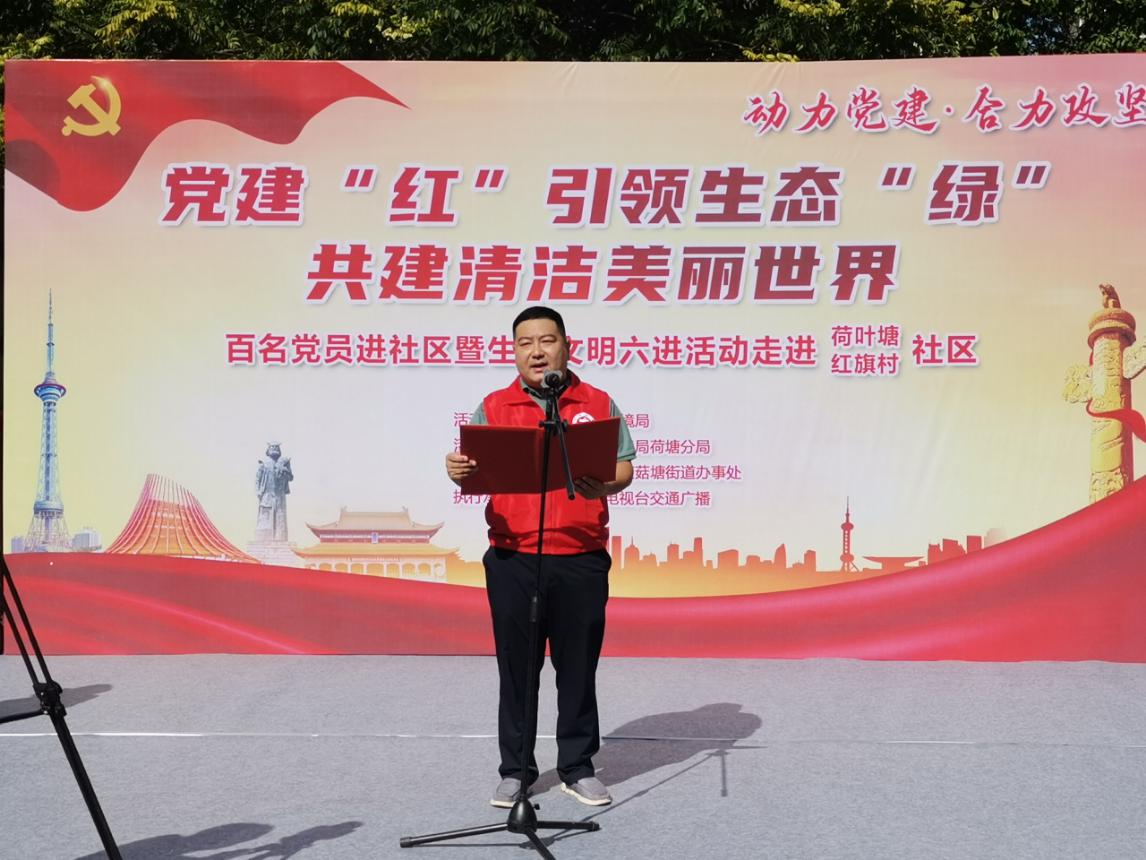 清洁美丽世界你我共享,文明城区需你我共建。2022年8月25日,由株洲市生态环境局主办的百名党员进社区暨生态文明"六进"活动在荷塘区荷叶塘社区、红旗村社区盛大召开。市生态环境局党组书记、局长周其伟、荷塘区人民政府副区长王昆、市生态环境局党组成员、副局长、机关党委书记刘倩生、市委组织部、市直机关工委领导、荷塘区茨菇塘街道办事处等领导与100余名中共党员共同参加。