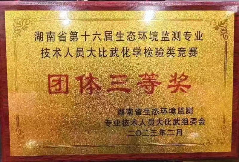 2月20日,湖南省第十六届生态环境监测专业技术人员大比武成绩揭晓,株洲市茶陵生态环境监测站荣获团体三等奖,雷丽红获个人奖项质量管理三等奖,文雅琦获个人奖项化学检验二等奖,文珍获个人奖项化学检验三等奖。