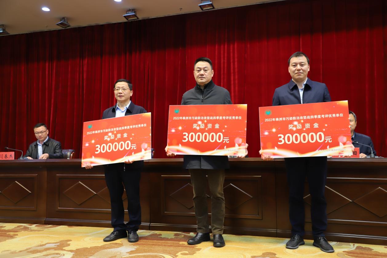 会上,市卫健委、市住建局、天元区、茶陵县作典型发言;各县市区、相关市直部门递交污染防治攻坚战"春雷行动"责任状;大会还向优秀等次县市区颁发2022年污染防治攻坚战四季度及年度奖励资金(奖牌)。