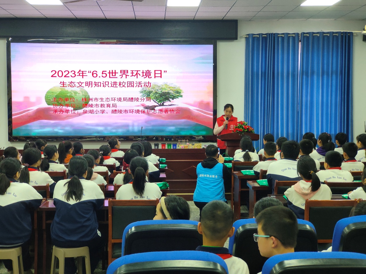 为大力倡导"低碳生活""绿色环保"等生态文明理念,营造浓厚的生态环境保护氛围,4月11日上午,株洲市生态环境局醴陵分局联合醴陵环保志愿者协会在醴陵市泉湖小学开展了生态文明知识进校园活动。