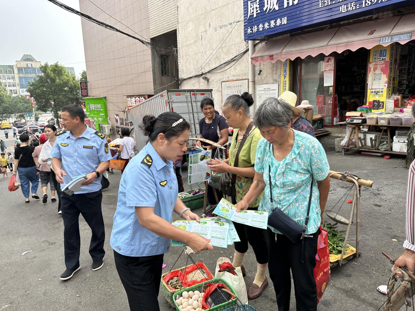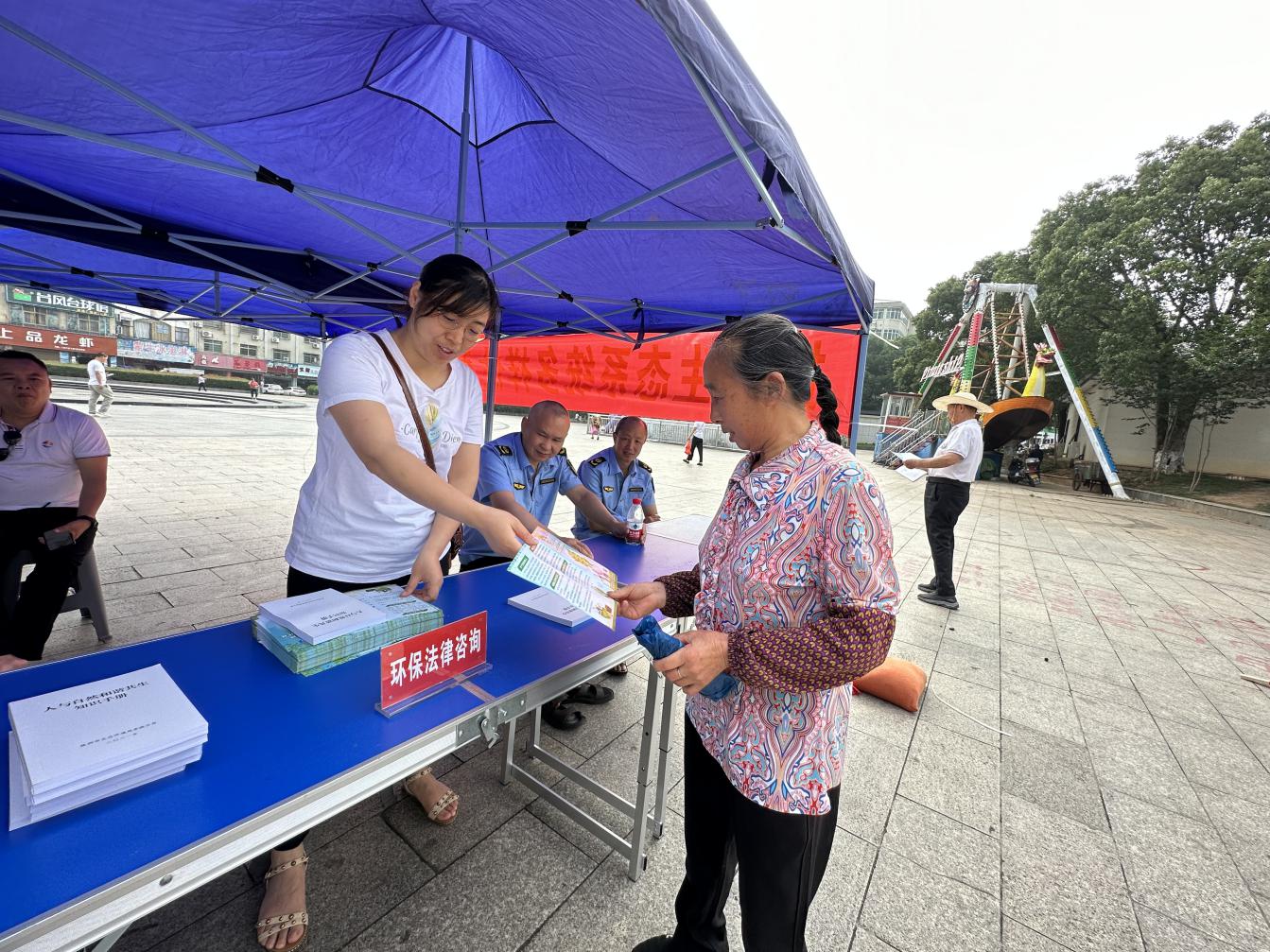 一是在我县人流量较为集中的犀城广场开展主题宣传活动。6月5日,我分局通过设立了环保业务咨询台、环保资料发放台、环保法律咨询台等宣传咨询点,通过悬挂宣传标语、设置宣传展板,与群众进行了面对面的环境保护宣导工作,宣传《环保法》《噪声法》《放射性污染防治法》等法律法规,讲解水、土壤、大气等环保知识,发放了人与自然和谐共生知识手册、建设人与自然和谐共生的现代化、垃圾分类指南等环保宣传资料,大力宣传了绿色环保理念,增强全民意识、节约意识、生态意识,倡导大家共同行动起来,努力改善环境质量,共同建设天蓝、地绿、水净的美好家园。