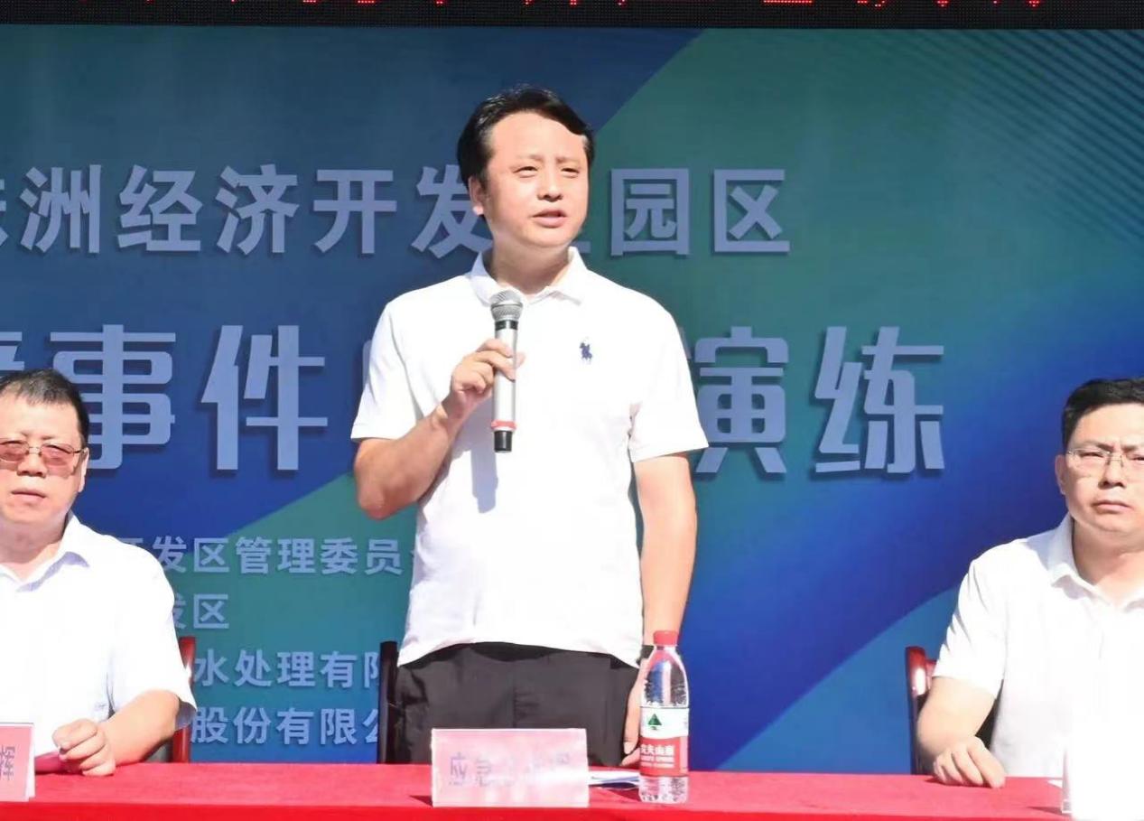 为进一步加强突发环境事件风险防范意识,提高园区突发环境事件应急处置能力,确保生态环境安全, 9月8日,株洲经开区组织开展2023年度园区突发环境事件应急演练。区党工委副书记、管委会主任曾毅鹏担任本次演练总指挥并讲话,区党工委委员、管委会副主任陈文元担任演练现场总指挥。