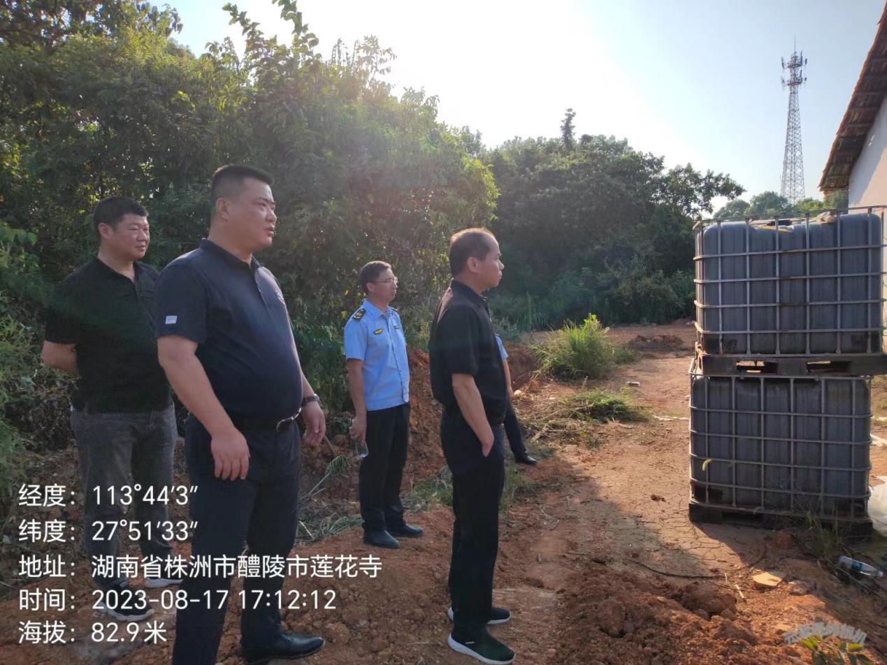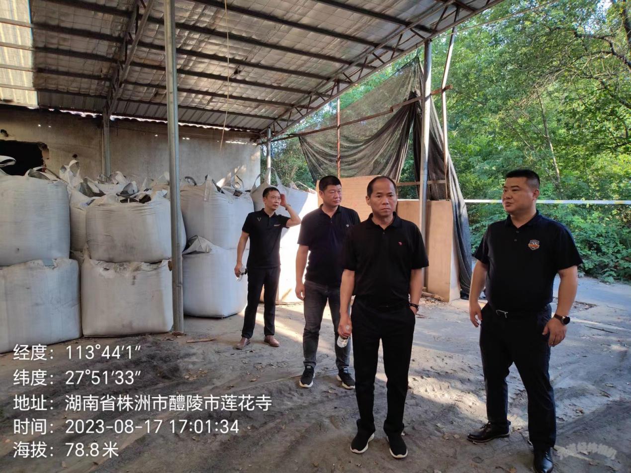 2023年8月17日,株洲市生态环境局毛亚文副局长带领生态环境保护综合执法支队负责人一行,到醴陵市李畋镇华埠村的原醴陵市富里莲花鞭炮烟花制造厂堆放非法转运的铝灰、强酸、强碱危险废物现场查看。