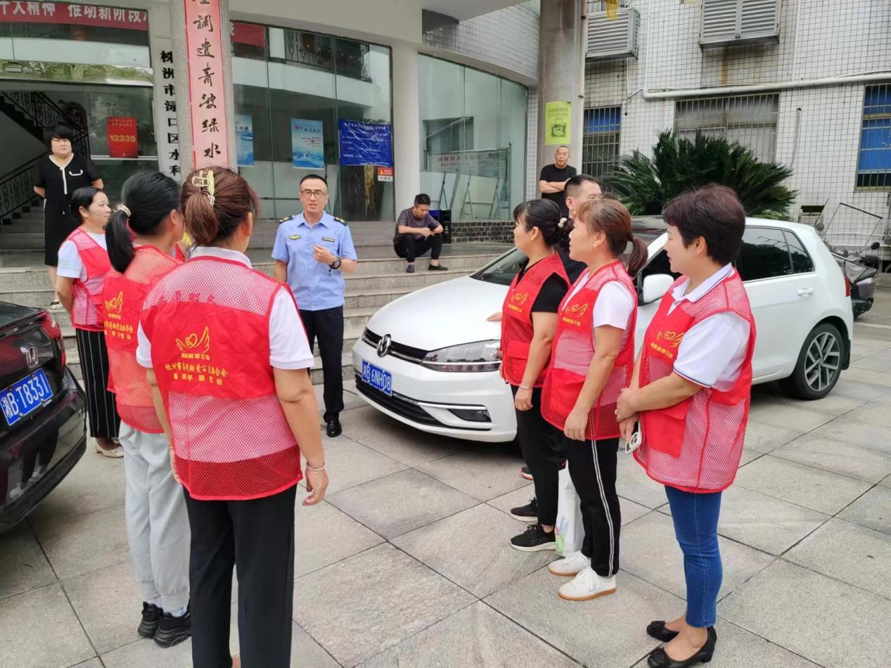 在集合点,生态环境局执法人员向各部门和志愿者介绍了区县级饮用水源地现状,宣讲了饮用水源保护区相关法律法规,详细回答了志愿者提出的保护水源地问题。