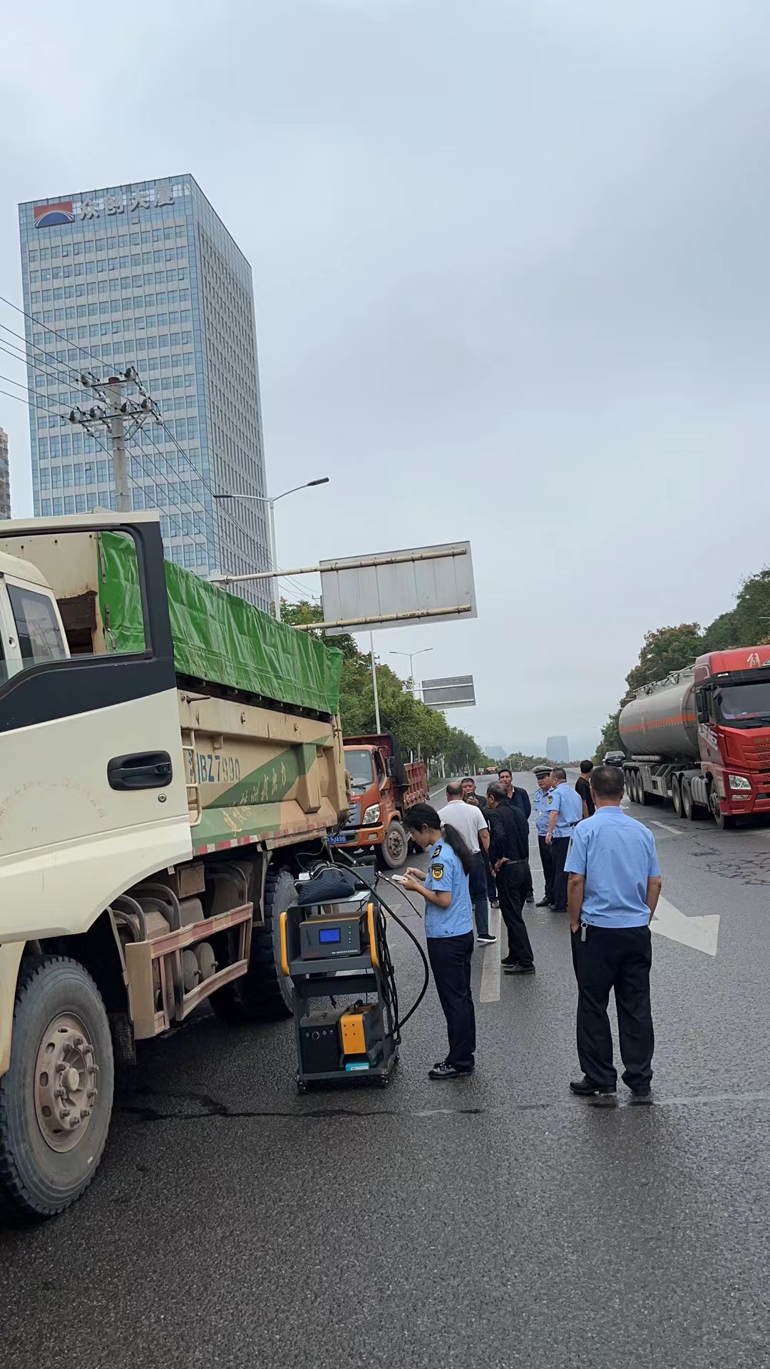 为加强对机动车尾气排放的监督和管理,进一步改善环境空气质量,结合"利剑"行动,9月26日,市生态环境局石峰分局联合石峰区交警部门在石峰区铜霞路口设点,使用移动式尾气检测设备对过往车辆进行尾气排放检测。
