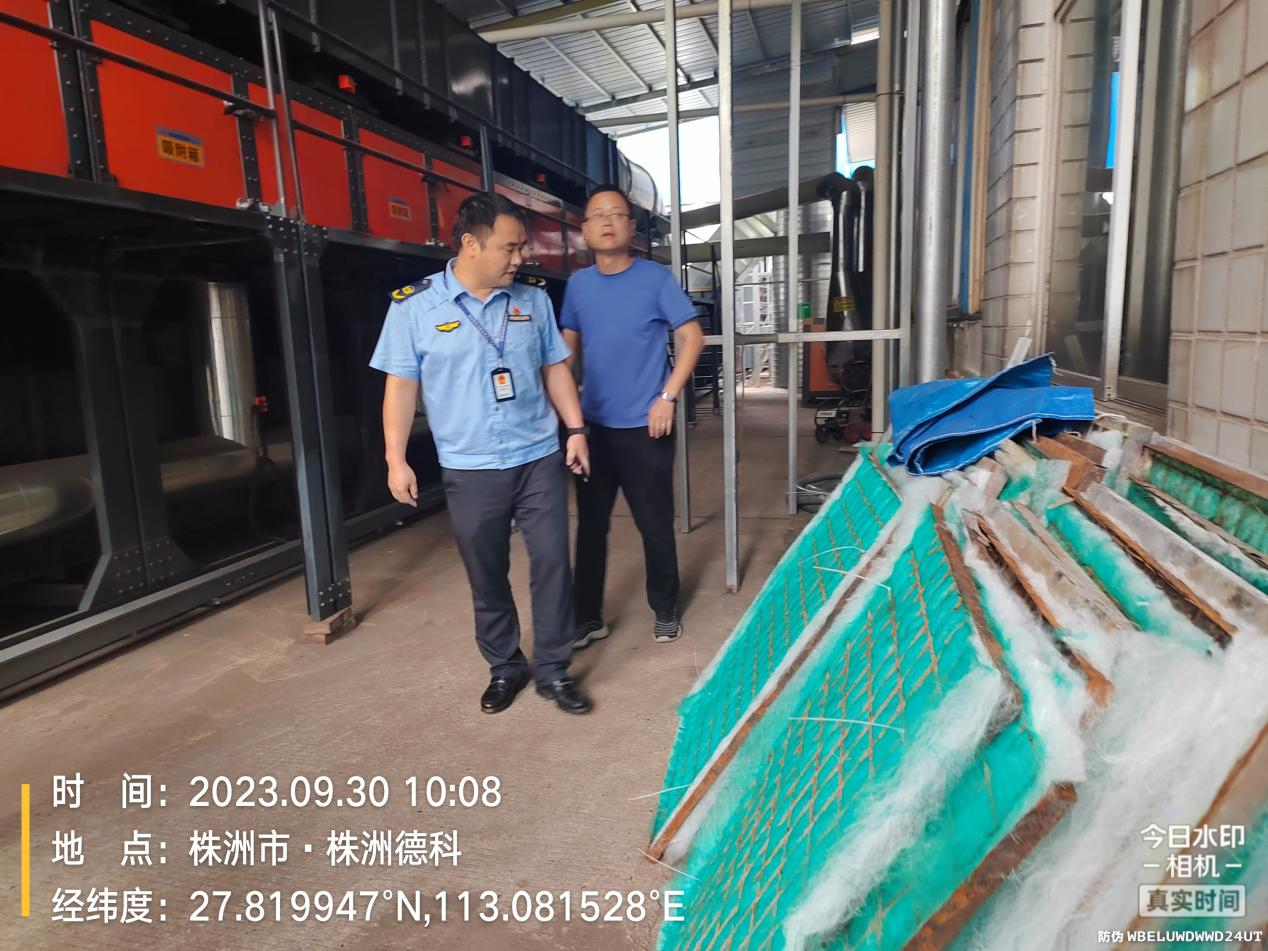 ▲芦淞分局执法人员现场检查森源家具厂等地大气帮扶工作开展情况