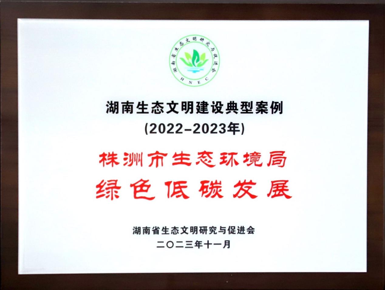会上,株洲市因生态环境保护宣传工作成效突出,获"2022—2023年湖南生态文明建设典型案例"奖。