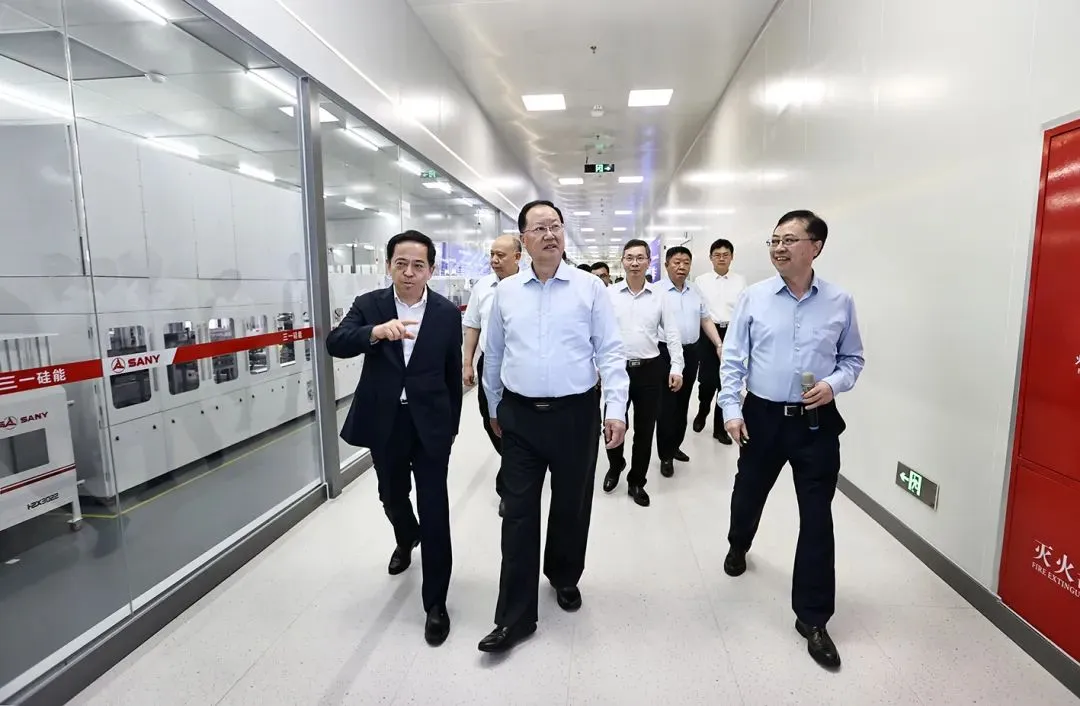 走进三一能源装备产业园项目,毛伟明一行详细了解项目产能、产业布局等情况,得知这里是我省首个5GW太阳能电池量产基地,毛伟明勉励企业要充分发挥研发、装备优势,加快关键核心技术攻关,吸引产业链上下游企业集聚,积极抢占产业、技术、人才、平台制高点,加速构建现代产业集群。