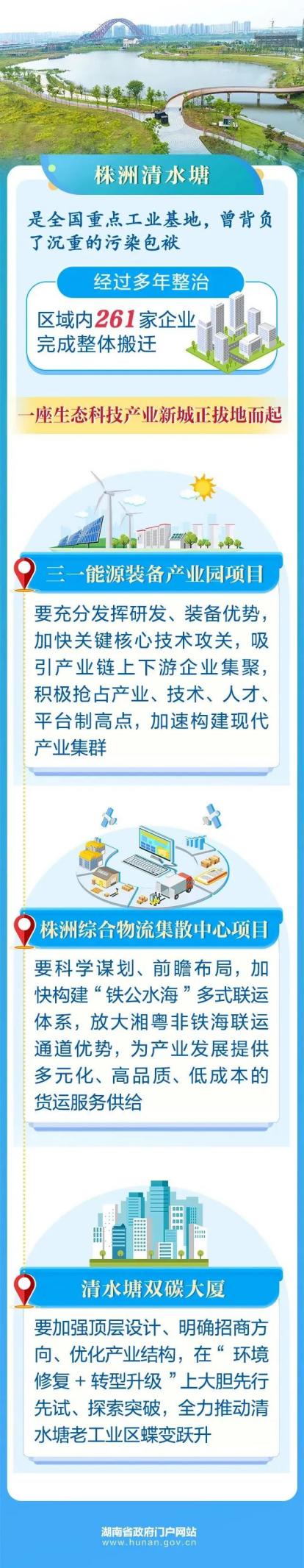 株洲清水塘是全国重点工业基地,曾背负了沉重的污染包袱。经过多年整治,区域内261家企业完成整体搬迁,一座生态科技产业新城正拔地而起。