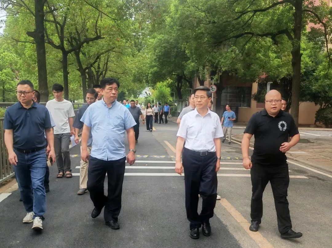 执法检查组在株洲市建宁中学调研雨污分流情况