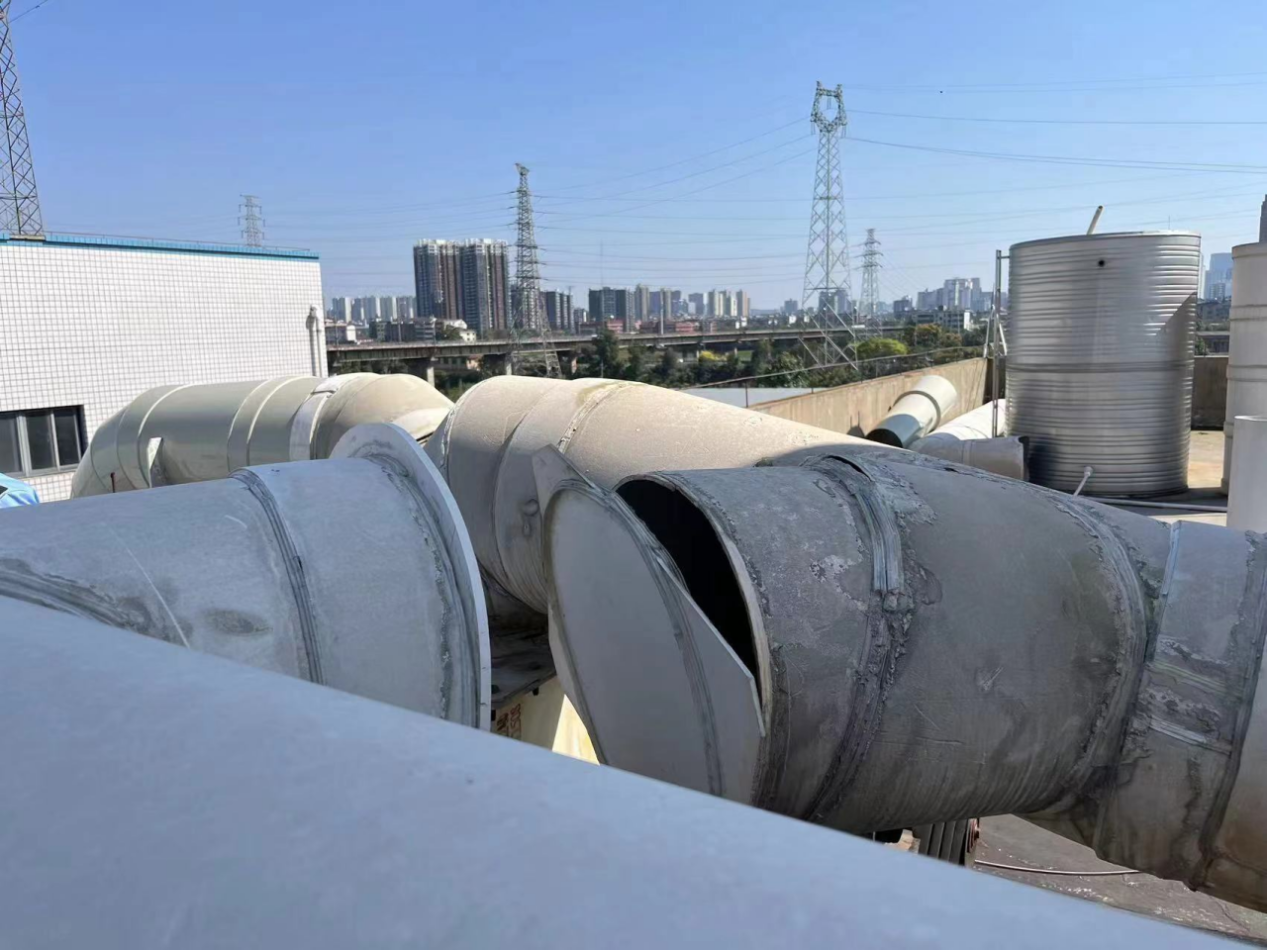 ▲废气处理设施收集管道破损
