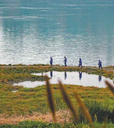 ▲生态优先 四川宜宾的巡护队员正在长江边的一处鱼类产卵地进行巡护。庄歌尔摄(人民视觉)