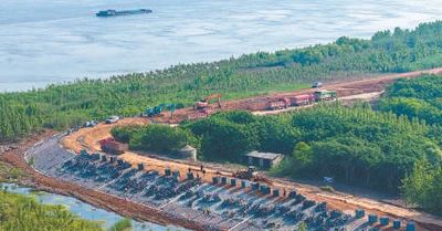 ▲生态优先 长江安徽芜湖段整治工程施工现场。该工程建成后可进一步提升防洪能力,改善生态环境。肖本祥摄(人民视觉)