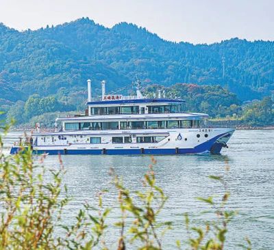 ▲绿色发展 长江上的第一艘氢燃料电池动力船"三峡氢舟1"号在航行。据测算,"三峡氢舟1"号相比传统燃油动力船舶,每年可减少二氧化碳排放343.67吨。新华社记者 肖艺九摄