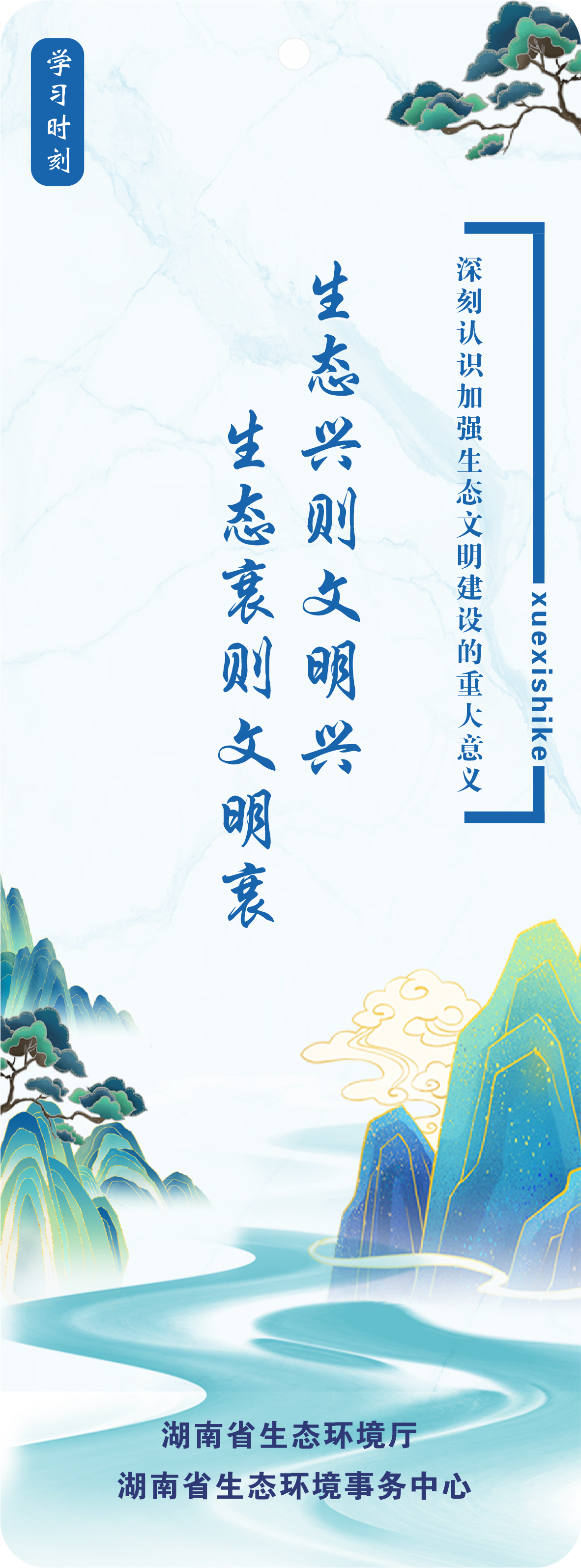 生态兴则文明兴,生态衰则文明衰。生态环境是人类生存和发展的根基,生态环境变化直接影响文明兴衰演替。古代埃及、古代巴比伦、古代印度、古代中国大文明古国均发源于森林茂密、水量丰沛、田野肥沃的地区。奔腾不息的长江、黄河是中华民族的摇篮,哺育了灿烂的中华文明。而生态环境衰退特别是严重的土地荒漠化则导致古代埃及、古代巴比伦衰落。我国古代些地区也有过惨痛教训。古代一度辉煌的楼兰文明已被埋藏在万顷流沙之下,那里当年曾经是一块水草丰美之地。河西走廊、黄土高原都曾经水丰草茂,由于毁林开荒、乱砍滥伐,致使生态环境遭到严重破坏,加剧了经济衰落。唐代中叶以来,我国经济中心逐步向东、向南转移,很大程度上同西部地区生态环境变迁有关。