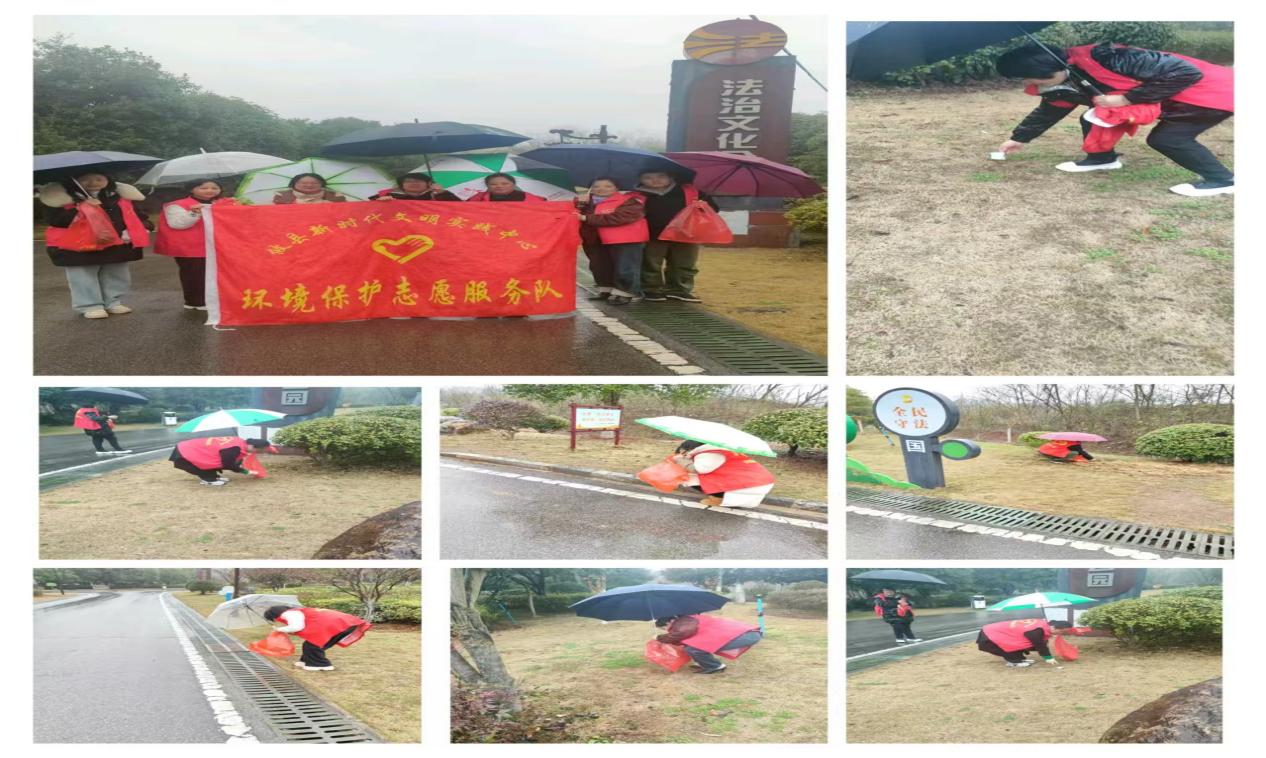 3月5日上午,天空下着瓢泼大雨,志愿者们撑着伞在攸洲公园二期进行"学雷锋"活动——捡拾白色垃圾,活动进行了3个小时,拾得白色垃圾一大袋。在活动期间遇见在此散步的人,志愿者们就上前宣传并告诫他们不要乱扔垃圾,保护大家的环境。