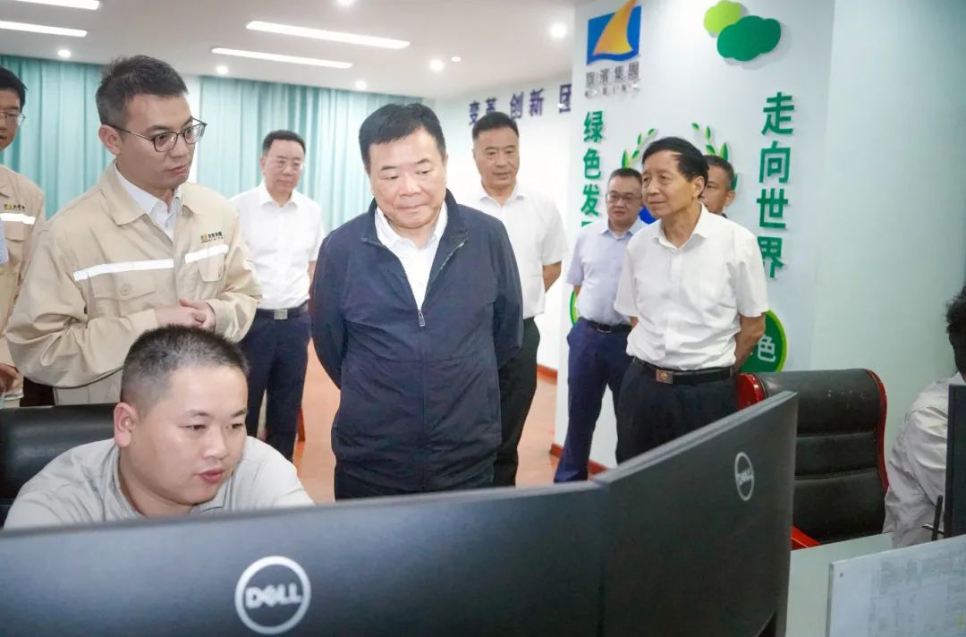 ▲检查组实地检查醴陵旗滨玻璃有限公司大气污染防治情况。