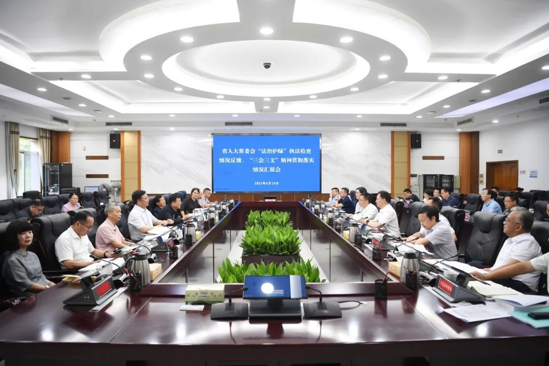 ▲省人大常委会"法治护绿"执法检查情况反馈、"三会三文"精神贯彻落实情况汇报会。