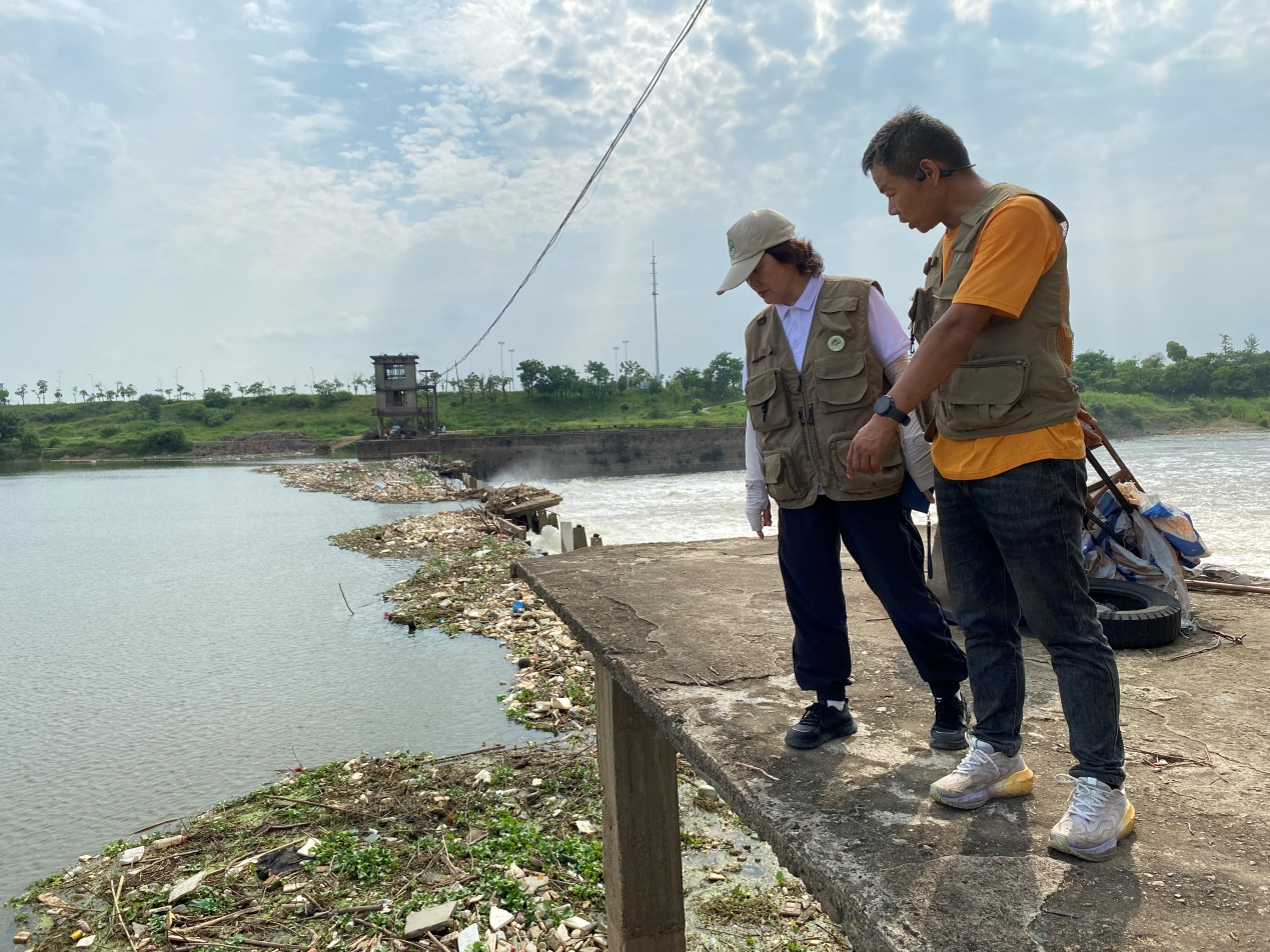 此次行动中,环保志愿者带领民主监督团,深入湘江大石围、渌口水电站、村镇水务公司、天元区博古排口等多个点位进行回访。绿色卫士株洲大队负责人张纪湘向大家详细介绍了各点位的"前世今生"。