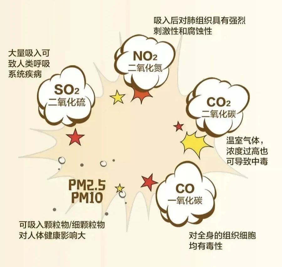 焚烧秸秆会产生PM2.5、一氧化碳、氮氧化物、苯并芘等大量有毒有害物质,据测算,露天焚烧1吨秸秆会产生1.5吨~2吨的二氧化碳,还会形成"雾霾"雏形,导致空气质量急剧下降,威胁老人、儿童等敏感人群的呼吸系统健康。