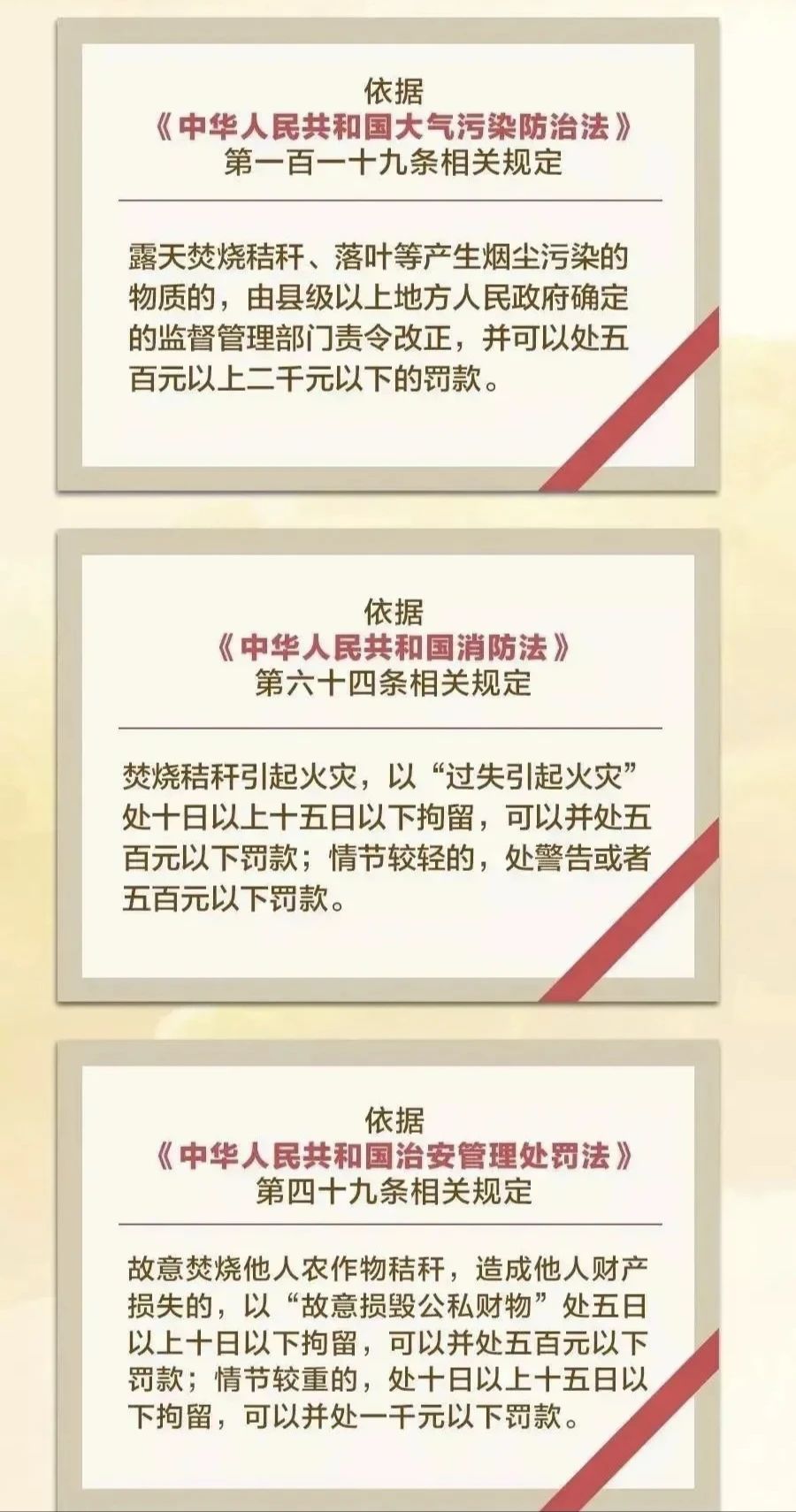 也许有人觉得"烧自家秸秆不犯法",但事实上,露天焚烧秸秆已被明确列为违法行为!