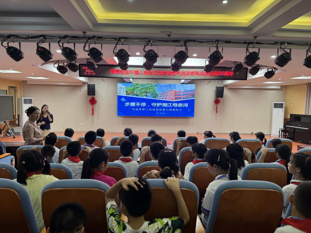 志愿者张纪湘奶奶以《步履不停·守护湘江母亲河》为主题,用一个个亲身经历的环保故事,带孩子们走进一场生动的生态文明课堂。"十年前,这里的水面还漂满垃圾,如今,这里已是白鹭栖息的家园。"张奶奶一边说一边展示一组湘江治理前后的对比照片,引来孩子们阵阵惊叹。作为株洲市首批"民间河长",张纪湘亲历了湘江从污染到变清的全过程。她从发现化工厂偷排废水,到组织居民联名拨打环保热线12369;从推动环保执法,到参与湿地修复——她把每一步行动,都变成一段段真实而动人的故事。