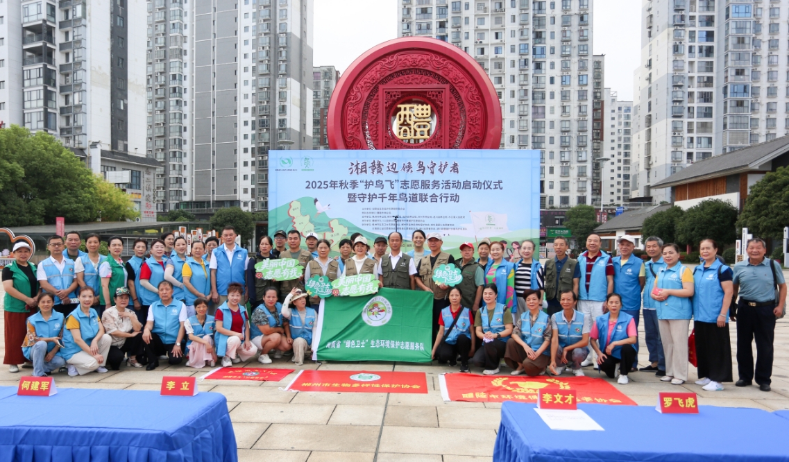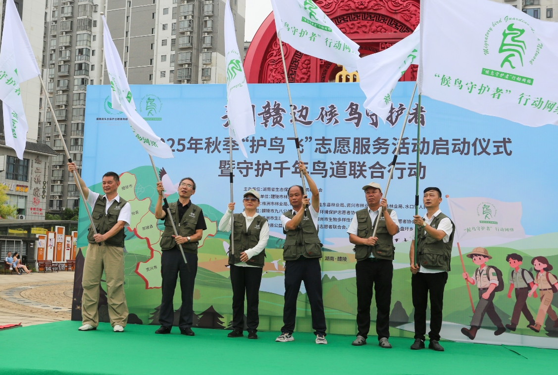 近日,湘赣边候鸟守护者2025年秋季"护鸟飞"志愿服务活动在醴陵启动,同步开展守护千年鸟道联合行动。来自湖南株洲、郴州、江西吉安3市的志愿者组成联合队伍,共同开启护鸟行动。