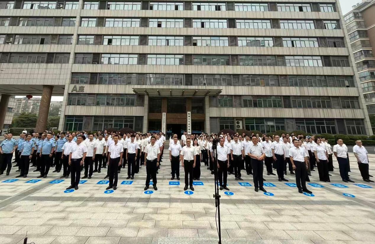 株洲生态环境监测中心,局属各单位、机关各科室及城区四分局全体党员干部,南五县分局主要负责人参加升旗仪式。